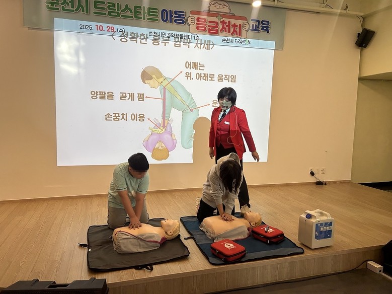 [순천시 세계타임즈=우덕현 기자] 순천시 드림스타트는 지난 29일 아동과 보호자 20명을 대상으로 공익활동 지원센터에서 “생명을 지키는 응급처치 교육”을 진행했다고 밝혔다.