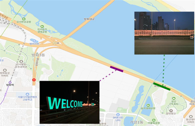 - 마곡대교~가양대교 방음벽, 중앙 녹지 등 기존 시설물 활용해 야간 경관 연출