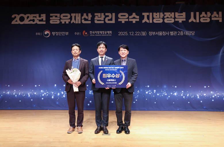 서울시는 지난 22일(월) 오후 2시 정부서울청사에서 행정안전부 주관으로 열린 ‘2025년 공유재산 우수 지방자치단체 시상식’의 ‘공유재산 관리분석 진단 부문’에서 최우수 광역 지자체로 선정됐다고 밝혔다.