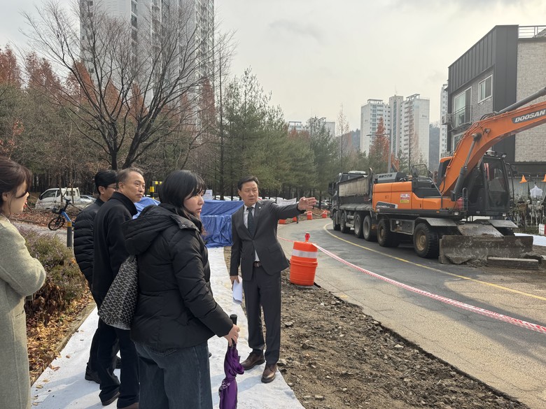 이 대표의원은 현장을 살핀 뒤 동행한 분당구청 및 관계 부서에 “주차난 해소의 필요성은 인정하지만, 대규모 가로수 제거와 보행·자전거도로 축소는 주민 생활환경에 직접적인 영향을 미친다”며 “현장을 다시 면밀히 검토하고 주민 의견을 최우선으로 반영해 사업을 전면 재검토해야 한다”고 강조했다.