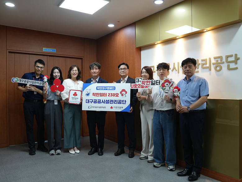문기봉 대구공공시설관리공단 이사장은 “이번 착한일터 가입은 임직원 모두가 함께 만들어낸 뜻깊은 성과”라며, “앞으로도 지역사회와 상생하며 나눔을 꾸준히 실천해 나가겠다”고 밝혔다.
