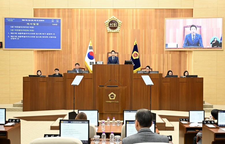 [세종 세계타임즈=이채봉 기자] 세종특별자치시의회(의장 임채성)는 5일 제97회 임시회를 개회하고 이날 제1차 본회의를 시작으로 19일까지 15일간 회기를 진행한다.