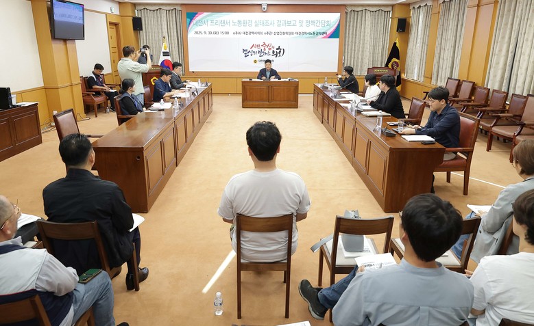 이번 간담회는 대전시의회가 주최하고 산업건설위원회와 대전광역시노동권익센터 공동주관 하였으며, 대전시 프리랜서 노동환경 실태조사 결과를 공유하고, 이를 바탕으로 지역 차원의 제도적 지원 방안을 모색하기 위해 마련됐다.