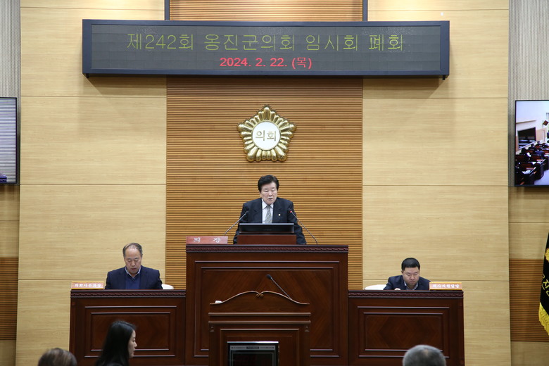 이의명 의장은 동료의원과 관계공무원들에게 감사를 표하며 “최근 관내에서도 잦은 화재가 발생하고 있으니, 군민들의 소중한 삶의 터, 인프라가 훼손되지 않도록 군수님 및 관계공무원 여러분께서는 화재 예방에 만전을 기하여 주시기를 바란다.”고 당부하며 발언을 마무리하였다.