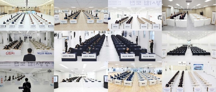 (지난 24일 전국 11개 지역에서 ‘성경시험 도전’에 참여한 신천지예수교회 신학강사들과 목회자가 시험을 치고 있는 모습)