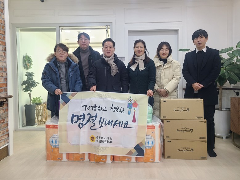 [충북 세계타임즈=이현진 기자] 충북도의회 행정문화위원회(위원장 최정훈)는 설 명절을 앞둔 10일 영동군 영동읍 소재 아름다운 요양원(원장 박정란)을 방문해 시설 관계자들을 격려하고 위문품을 전달했다.