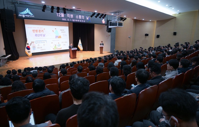 최민호 시장은 1일 시청 여민실에서 열린 12월 직원 소통의 날 행사에서 해수부 부산 이전과 세종보 문제 등 어려운 여건 속에서도 흔들림 없이 시정을 추진해 온 직원들의 공로를 치하했다.