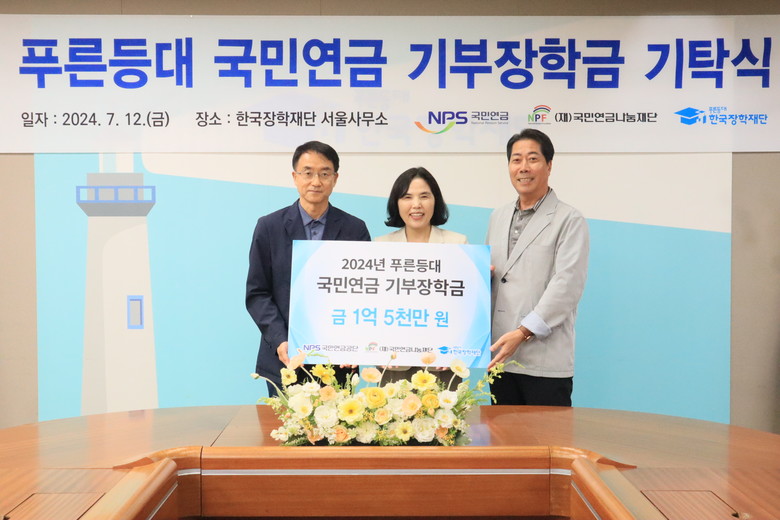 [세계타임즈 = 심귀영 기자] 국민연금공단(이사장 김태현)과 국민연금나눔재단(이사장 김신열)은 12일 한국장학재단에 ‘푸른등대 기부장학금*’ 1억 5천만 원을 기부했다.