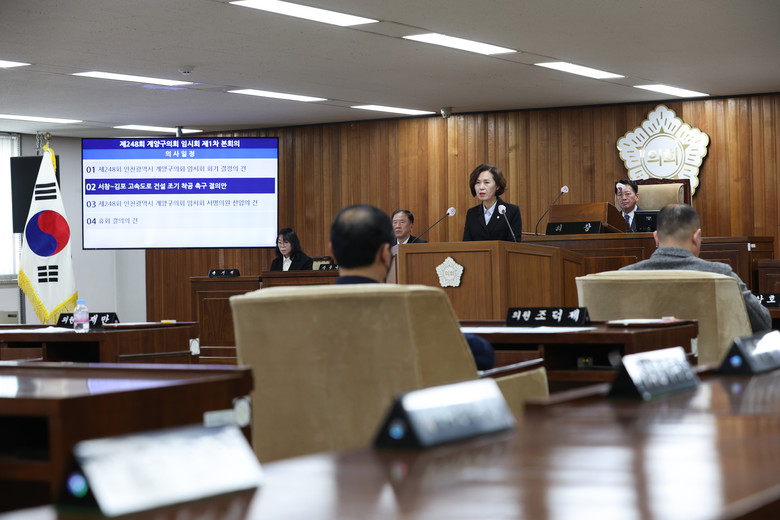 [계양구 세계타임즈=심하린 기자] 인천시 계양구의회(조양희 의장)는 18일 11시에 열린 제248회 제1차 본회의에서 문미혜 의원이 대표 발의한 ‘서창~김포 고속도로 건설 조기 착공 촉구 결의안’을 만장일치로 채택했다.