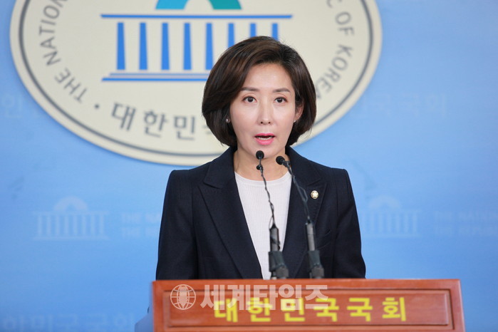 [세계타임즈 김인수 기자]자유한국당 나경원 의원이 2일 오후 국회 정론관에서 기자회견을 열고 원내대표 선거 출마를 선언하고 있다. 2018.12.2