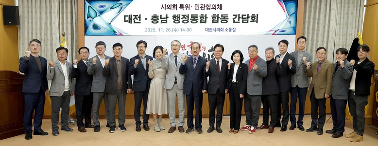 - 시민 공감대 확산과 국회 심사 대응 총력- [세계타임즈=대전 이채봉 기자] 대전충남 행정통합 민관협의체(공동위원장 이창기)는 26일 대전시의회 소통실에서 대전광역시의회 대전충남 행정통합 특별위원회(위원장 이재경)과 합동 간담회를 열었다.