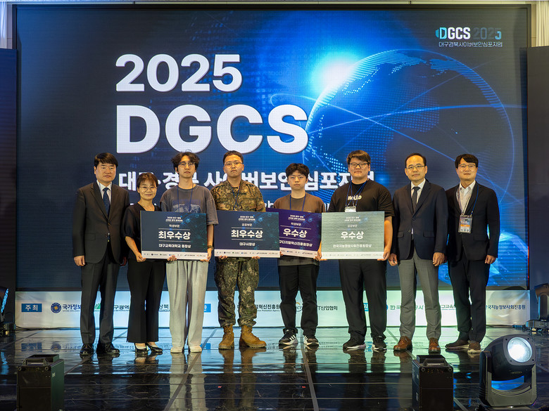 이날 함께 열린 ‘대구·경북 사이버공격 방어대회 2025’는 실시간 정보보안 위협 방식의 실습 대회로, 총 60여 명의 지역 대학(원)생과 공공기관 재직자들이 참여해 치열한 해킹·방어 경쟁을 펼치며 정보보호 실전 역량을 겨뤘다. 이 중 공공기관(제2작전사령부, 한국수력원자력(주)) 재직자 2명, 영남이공대학교 학생 2명이 수상했다.