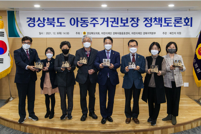 좌장을 맡은 배진석 의원은 “지난해 10월 「경상북도 주거 기본 조례」를 대표발의하여 제정한 만큼, 도내 아동주거환경 개선을 위한 법‧제도적 기반은 마련되었다”며, “이제는 제대로 된 정책수립과 실천을 통해 아동 주거빈곤문제를 해결해 나가는데 다함께 힘을 모아야 할 때”라 강조하였다.