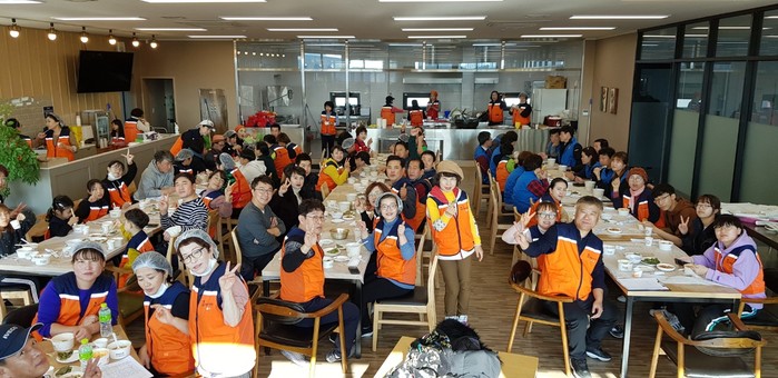 이날 밑반찬 봉사에는 유희자 단장을 비롯해서 자원봉사자 100명이 참석해서 고추장돼지고기볶음, 청태무침, 콩나물무침 3가지를 만들어서 배달을 하였다.