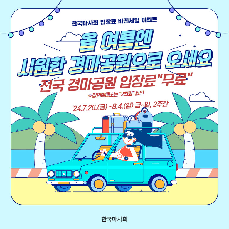 [세계타임즈 = 송민수 기자] 한국마사회(회장 정기환)가 본격적인 여름휴가 시즌과 경마공원 순차적 휴장기를 맞아 오는 26일부터 2주간(7월26일 ~ 8월4일) 전국 3개 경마공원에서 무료입장 이벤트를 시행한다고 밝혔다.