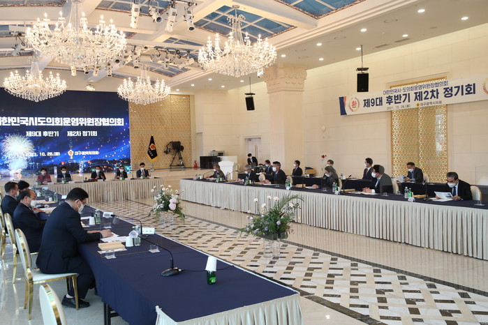 [대구=세계타임즈 한성국 기자] 대한민국 시도의회 운영위원장 협의회(회장 전경선(전남), 수석부회장 이시복(대구)) 제9대 후반기 제2차 정기회가 대구시의회 주관으로 26일(화) 오후 호텔 수성에서 개최되었다.