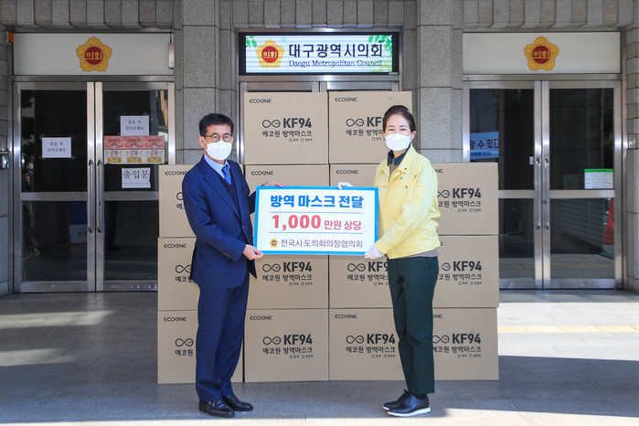 전국시·도의회의장협의회는 국내 ‘코로나 19’ 피해가 빠르게 확산되어 피해 정도가 심각한 대구·경북지역의 주민들에게 재난구호금을 긴급 지원하기로 결정하고, 마스크 7천장(1천만원 상당)을 대구광역시의회에 전달하면서 고통을 겪고 있는 시민들을 위로하고 사태의 조속한 진정을 기원했다.
