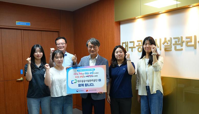 ▸ 공공기관 협력·내부 TF 운영 등 실질적 대응 정책도 병행 [세계타임즈=대구 한윤석 기자] 대구공공시설관리공단(이사장 문기봉)은 5월 21일(화) 저출생과 고령화 등 인구문제에 대한 사회적 관심을 높이기 위해 ‘저출생 인식변화 릴레이 캠페인’에 참여했다.