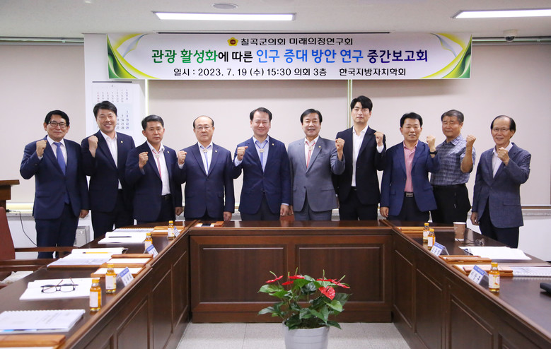 지난 4월 25일 착수보고회를 시작으로 칠곡군 전통시장활성화 및 칠곡군 관광활성화에 따른 인구증대방안를 위해 구성된 의원연구단체는 연구진행 경과를 공유하고 의원들과 함께 월례회를 열어 서로의 의견을 나누는 시간을 가졌다.