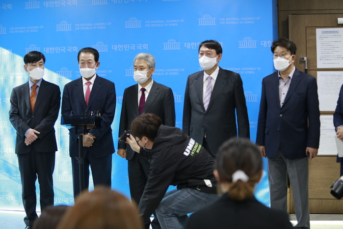 [세계타임즈 이진화 기자]국민의힘 대선경선 후보인 윤석열 전 검찰총장이 내달 초 ‘광주 방문’을 예고한 데 이어, 호남 거물급 정치인으로 손꼽히는 박주선 전 국회부의장과 김동철 전 바른미래당 원내대표가 29일 오후 서울 영등포구 국회 소통관에서 기자회견을 열고 지지선언을 했다.