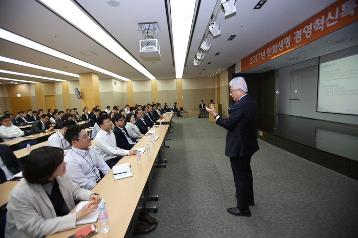 이번 ‘2017 경영혁신특강’을 기획한 한화생명 정하영 인적자원실장은 “예측불가능한 금융시장 변화에 유연하게 대처하기 위해서는 회사의 전 임직원이 함께 미래를 준비해야 한다는 마음으로 특강을 마련했다.”며, “4차 산업혁명시대 트렌드 이해를 통해 외부로부터 변화유도가 아닌 안으로부터의 혁신과 변화가 이루어지도록 임직원들의 역량개발에 주력하겠다”고 밝혔다.