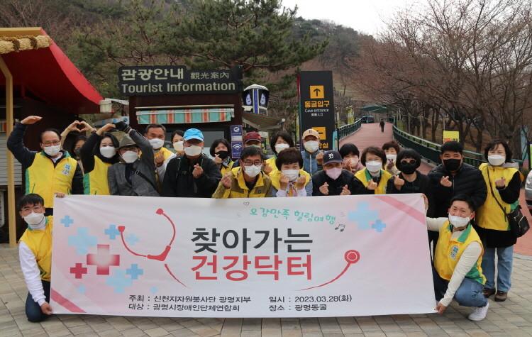 이날 탐방에는 광명시장애인단체연합회 소속 장애인 10명, 자원봉사자 2명과 신천지자원봉사단 광명지부 자원봉사자 16명 등 약 40여 명이 참여했으며, 행사 프로그램으로는 ▲광명동굴 체험 ▲전신 스트레칭 ▲수채화 그림 그리기 등이 진행됐다.