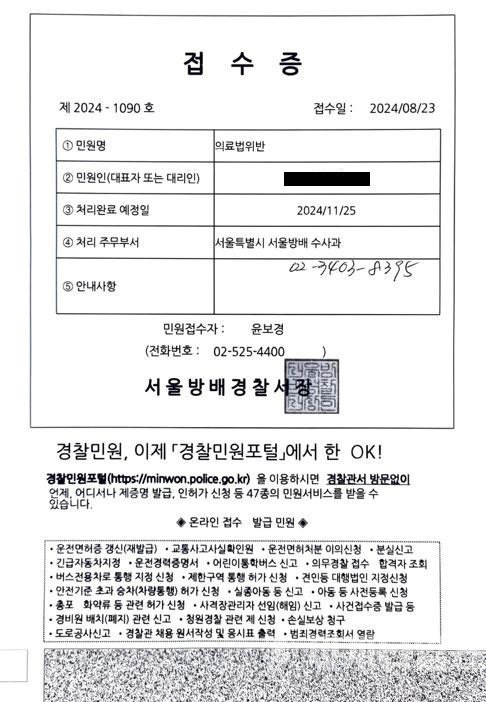 일례로 앞선 ‘자가지방 줄기세포치료’불법광고 고발 건의 경우, 보건복지부에 민원을 제기한 결과 의료법 위반이라는 유권해석을 받았음에도 불구하고 수사기관인 방배경찰서는 지난 7월 9일 불송치(혐의 없음) 결정을 내렸다. 수사결과 통지서에 따르면 ‘대한정형외과학회 의료평가윤리위원회 심의 결과를 근거로 보건복지부 고시 범위를 벗어난 허위·과대광고라고 볼 수 없고, 자가지방 줄기세포 치료술을 소비자에게 널리 알리기 위한 의도적 활동이라기보다 제한적 의료기술을 소개한 것이라고 판단’했다는 것이다.