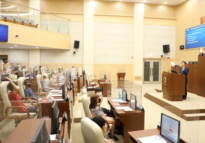 상병헌 의장은 “대의제 민주주의에서 의사 결정 과정은 시민들을 위하는 막중한 책임감을 전제로 이뤄진다”며 “학생들이 의회 교실을 통해 민주시민으로 한 단계 성장하는 계기가 되길 바란다”고 말했다.