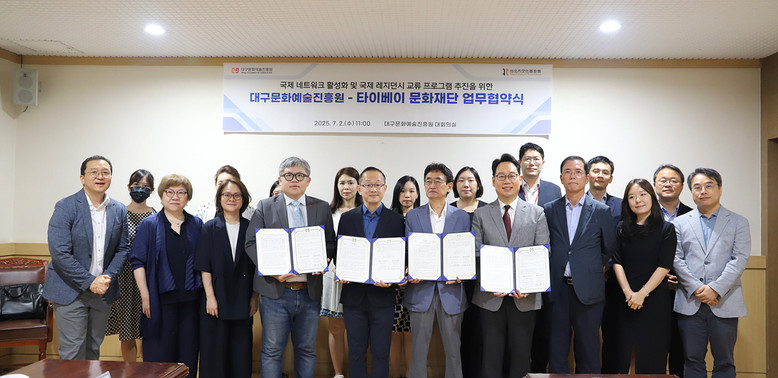 ▸ 2026년부터 대구예술발전소 입주작가 교환프로그램 진행 예정 [세계타임즈=대구 한윤석 기자] 대구문화예술진흥원(원장 박순태)과 타이베이 문화재단은 국제 문화예술 발전 및 레지던시 사업 활성화를 위해 업무협약을 맺었다고 2일 밝혔다.