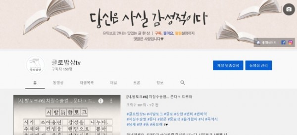 어느 하나 눈에 띄는 내용은 아니지만 시의 감성을 다양하게 담아가고 있다. 채널을 이끄는 운영자의 입장에서 ‘글로밥상tv’가 결코 특유의 감성을 잃지 않게 노력하고 싶다.