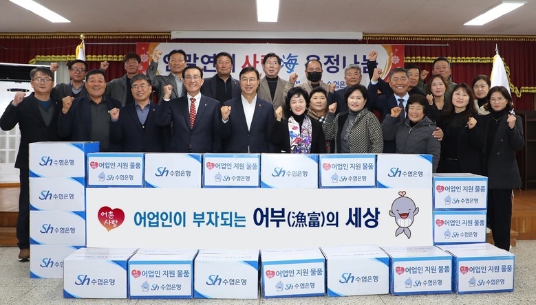 이 자리에서 강신숙 은행장은 “올해는 폭염과 폭우, 태풍 등 기상악화와 수산물 소비위축 등으로 어업인들의 근심이 큰 한해였다”며 “연말연시를 맞아 수협은행 임직원들의 작은 마음을 전달하오니, 경제적 어려움을 극복하는데 조금이나마 도움이 되길 바란다”고 말했다.