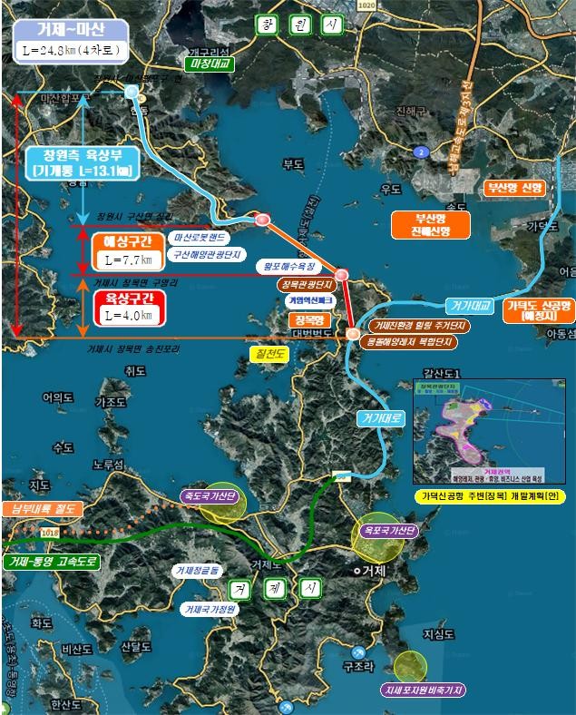 이 사업은 가덕도신공항, 부산항신항.진해신항과 대구.경북지역을 연결하는 고속도로로, 경남이 글로벌 물류허브로 도약하는 기반이 되고, 진해신항 배후단지 개발* 등 주변 개발계획에 탄력을 줄 것으로 기대된다.