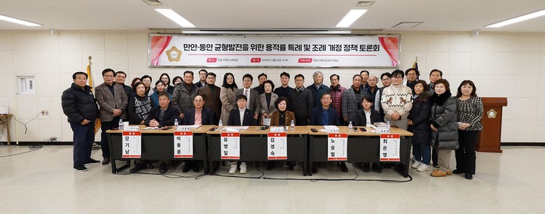 이번 토론회는 만안구와 동안구 간 불균형의 구조적 원인을 진단하고, 용적률 특례와 조례 개정을 통해 정비사업을 활성화할 수 있는 현실적인 방안을 모색하기 위해 마련됐다.