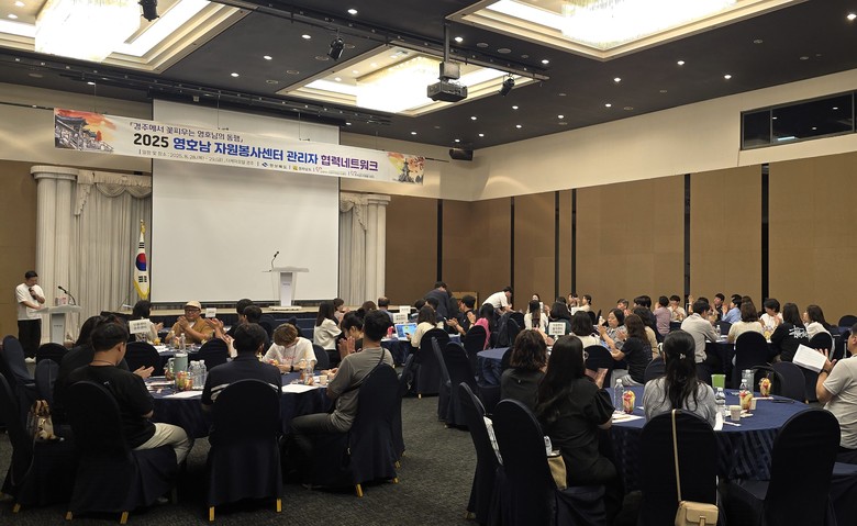 경상북도 종합자원봉사센터와 전라남도 자원봉사센터 관계자 100여 명이 함께한 이번 워크숍에서는 ▵APEC 2025 KOREA 안내 및 홍보 ▵영·호남 재난 대응 자원봉사 우수사례 발표 ▵양 지역 주요 사업 공유 ▵특강 및 문화 체험 볼런투어 등 다채로운 행사를 열었다.