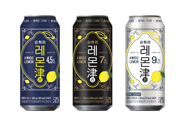 새 단장한 레몬진은 레몬 모양의 배경을 노란색으로 강조하고, 레몬 그림을 추가해 통레몬을 침출한 제조 공법과 레몬의 풍미를 시각화했다. 배경의 펜 그림을 간결하게 변경하고 알코올 도수 표시를 제품 중앙에 배치해 제품 정보를 쉽게 확인할 수 있다.