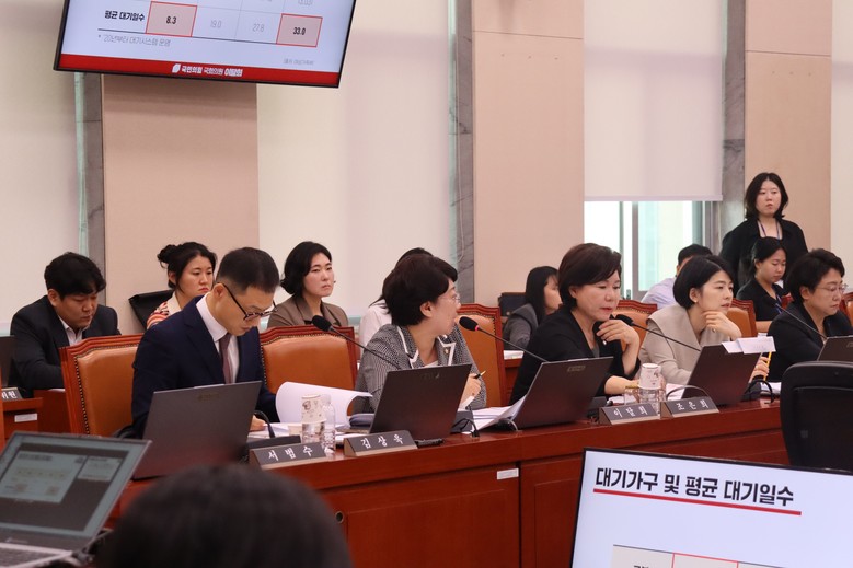 이 의원은 “ 아이돌봄서비스 대기가구는 2020 년 2 천 6 백여가구에서 2023 년 1 만 3 천여가구로 약 5 배 증가하였다 ” 고 말하며 , “ 평균 대기일수는 2020 년 8.3 일에서 2023 년 33 일로 무려 한 달 동안 대기를 해야 서비스를 받을 수 있는 상황이다 ” 고 밝혔다 .