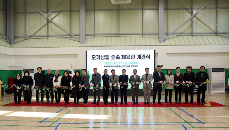 [세종 세계타임즈=이채봉 기자] 2017년 주민숙원사업으로 선정된 이후 5년 만에 계절과 날씨에 관계없이 주민 누구나 이용할 수 있는 ‘오가낭뜰 숲속 체육관’이 20일 개관했다.