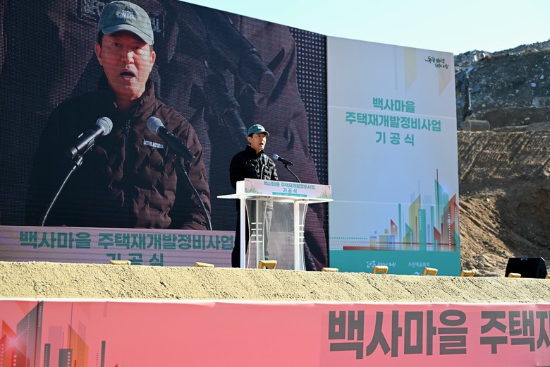 [서울 세계타임즈=이장성 기자] 서울 마지막 달동네로 불리는 백사마을(노원구 중계본동 30-3번지 일대)의 주택재개발사업이 16년 만에 정상화되며 첫 삽을 떴다. 서울시는 1일(월) 오전 10시 20분 기공식을 개최해 최고 35층 총 3,178세대 규모의 명품 주거단지로 거듭날 백사마을의 새출발을 알렸다.