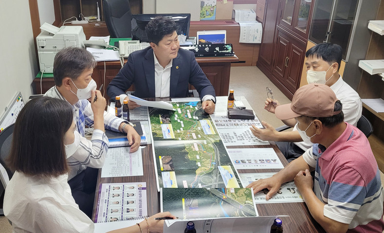 [울산 세계타임즈=이호근 기자] 울산광역시의회 공진혁 의원(행정자치위원회 부위원장)은 8월 3일 오전 10시30분 의원연구실에서 시 환경정책과 관계 공무원과 울주군 청량읍 율현마을 주민들과 함께 울산하천기본계획 관련 주민 간담회를 가졌다.