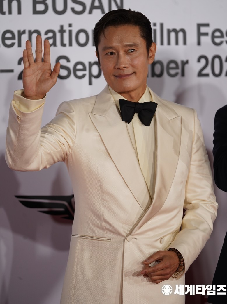 배우 '이병헌'이 17일 부산 해운대구 영화의전당에서 제30회 부산국제영화제(BIFF) 개막식 포토월에 참석해 포즈를 취하고있다.
