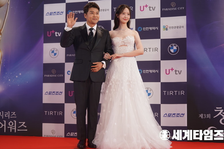 mc'전현무'와'임윤아'가 19일 오후 인천 영종도 파라다이스시티에서 열린 '제3회 청룡시리즈어워즈' 시상식 레드카펫 행사에 참석해 포토타임을 갖고 있다.세계타임즈 / 신상철 기자 news@thesegye.com