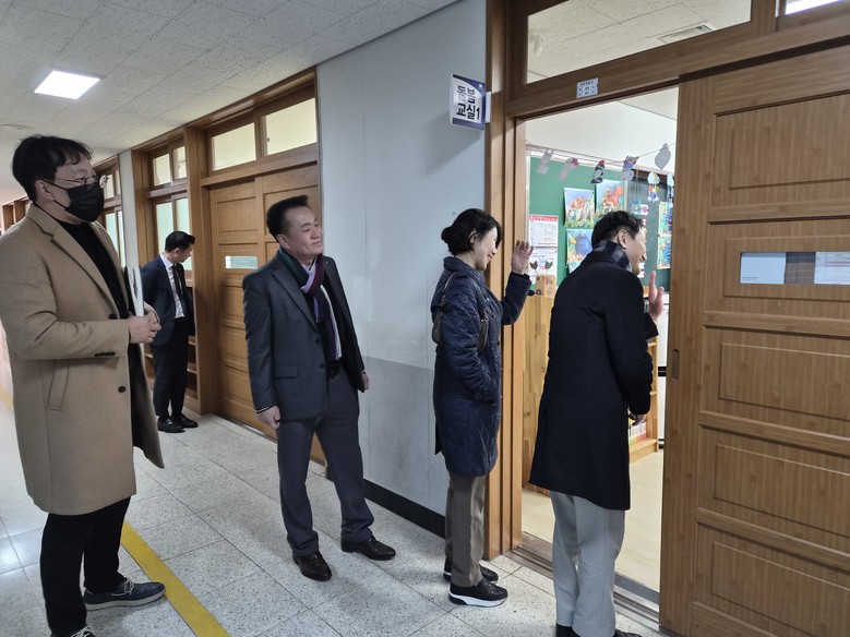 권성연 부교육감은 현장에서 학교 측으로부터 당일 돌봄 수요 조사 결과, 대체 운영계획, 교내 인력 활용 현황, 학부모 안내 내용 등을 보고받고, 선택형 돌봄 프로그램 운영 실태와 학생 안전 관리 방안을 중심으로 자세히 점검했다.