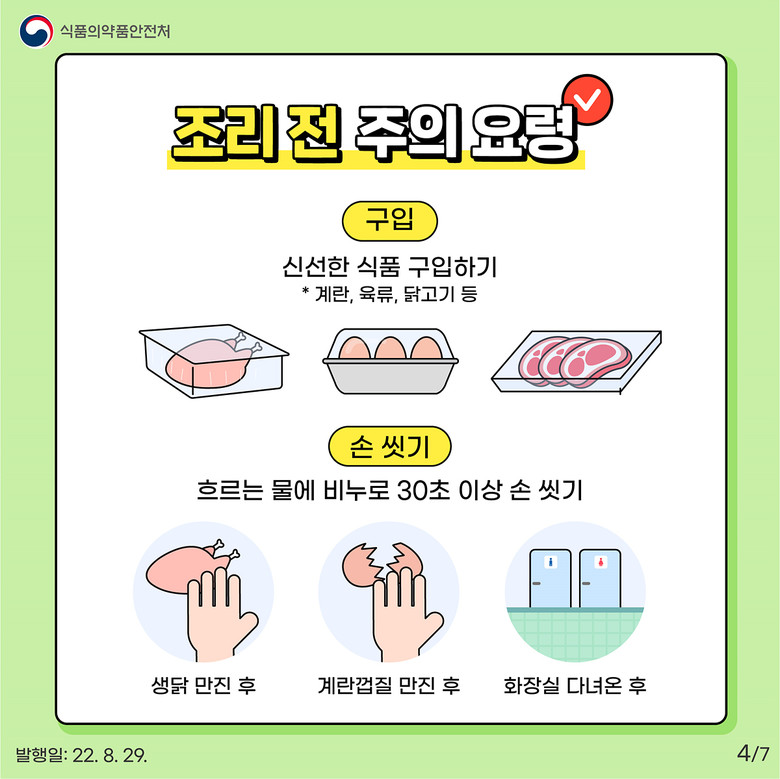 특히, 기온이 높은 여름철에 주로 증가하는 살모넬라 식중독 예방을 위해 달걀 등 식재료 취급·보관 관리 등 식중독 예방 수칙에 대한 현장 안내도 함께 진행한다.