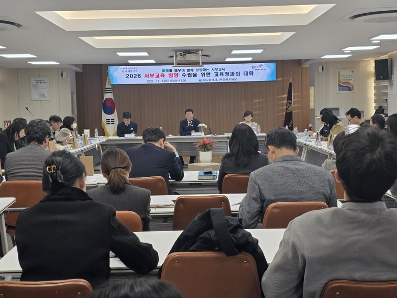 [대구 세계타임즈=한윤석 기자] 대구서부교육지원청(교육장 김규은)은 12월 4일(목) 청사 대회의실에서 학생, 학부모, 교원 대표 12명을 초청해 ‘2026 서부교육의 방향 수립을 위한 교육장과의 대화’를 개최했다.