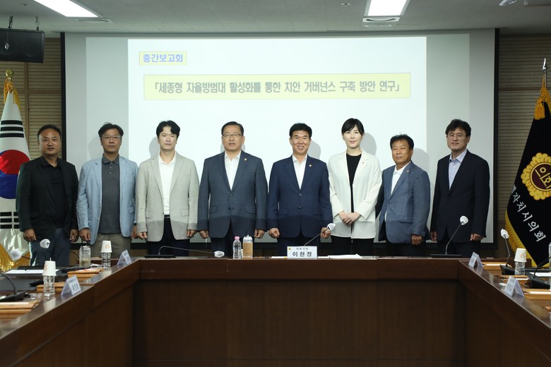 이현정 대표 의원은 “이번 중간보고회를 통해 논의된 많은 의견들이 세종형 치안 거버넌스 구축을 위한 소중한 디딤돌이 되었다.”며, “시민들이 느끼는 안전 체감도가 향상될 수 있도록 실질적 제도 개선을 위해 최선을 다하겠다”고 강조했다.