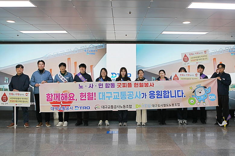 김기혁 대구교통공사 사장은 “공사는 안전하고 편리한 대중교통 서비스를 제공하는 데 그치지 않고, 지역사회에 실질적 도움이 되는 사회공헌 활동을 지속 확대해 나가겠다”며, “혈액 수급 위기 극복을 위해 앞으로도 시민들과 함께 생명 나눔 활동을 꾸준히 이어갈 것”이라고 말했다.