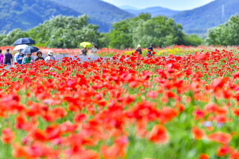 [세계타임즈=함안군 최성룡 기자] 함안군 악양둑방(법수면 악양길 49-10)에는 선홍빛 꽃양귀비가 장관을 이루고 있고, 악양생태공원(대산면 서촌리 1418)에는 노란 금계국과 하얀 샤스타데이지가 어우러져 봄의 절정을 알리고 있다.