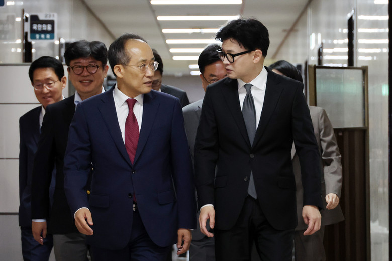권 의원은 한 대표가 추 원내대표와 사전 상의와 의견 교환 없이 일방적으로 발표했다. 검사 수사하듯이 한 것이라면서 북한인권재단 이사 추천을 전제로 하지 않는 특별감찰관 추천에 반대 의사를 밝혔다.특별감찰관 후보 추천과 관련, 당 대표와 원내대표의 권한 범위에 대한 해석도 엇갈리고 있다.국민의힘 당헌에는 당 대표는 당무를 통할하고, 원내대표는 국회 운영에 관한 책임과 최고 권한을 갖는다고 돼 있다.추 원내대표는 특별감찰관은 국회 추천 절차가 있어야 한다며 국회 운영과 관련된 원내 사안이라고 말했다.한 대표는 이날 당 대표가 법적·대외적으로 당을 대표하고 당무를 통할한다며 원내든 원외든 총괄하는 임무를 당 대표가 수행하는 것이라고 반박에 나섰다.한 친윤계 의원은 통화에서 당무는 최고위에서, 원내 사안은 의원총회에서 의사결정을 하는 것이 당연하다면서 대표가 108명의 의원을 설득하고 원내대표의 협조를 끌어내지 못한다면 리더십에 문제가 있는 것이라고 지적했다.특별감찰관 추천을 논의할 의원총회 개최를 두고도 친한계와 원내 지도부 간 신경전이 벌어졌다.친한계는 전날 오후 의원들 단체대화방에서 의원총회를 조속히 열라고 추 원내대표를 압박했고, 추 원내대표는 이날 오전 국감을 다 마치고 의원님들 의견을 듣는 의원총회를 개최하도록 하겠다고 답했다.