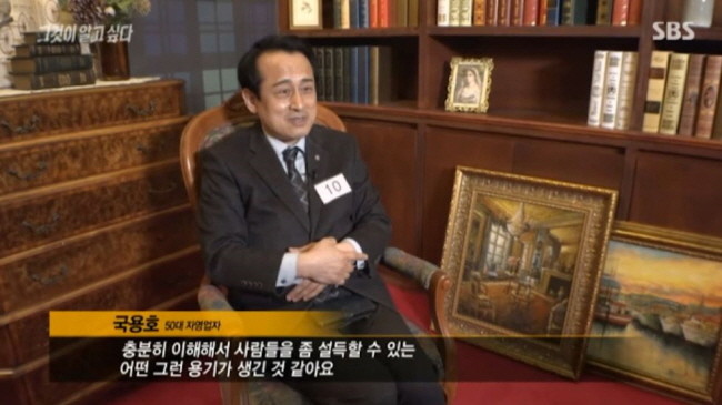 방송에서 토론에 참여한 자영업자 국용호(58, 남)씨는 자신의 지역, 종교, 학벌 등 세 가지에서 지금껏 차별을 당해봤다고 고백했다.