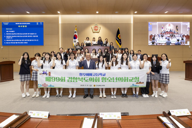 [경북 세계타임즈=한윤석 기자] 경상북도의회는 5월 9일(금) 도의회 본회의장에서 상주여자고등학생 28명이 참여한 가운데『제99회 경상북도의회 청소년의회교실』을 개최했다.